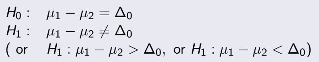 Khi này H0 sẽ là một phát biểu về độ chênh lệch giữa mean của 2 tổng thể: ∆0.