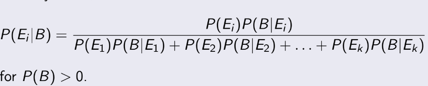 E1, E2, ... Ek là xung khắc và exhaustive, B là một biến cố bất kì: